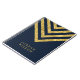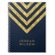 Elegant notebook featuring faux gold chevron pattern against a blue background cover that you can personalise with your name. Great for school and office.