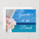 Join us at the beach save the date invitation postcard. The text can be changed using right the "Details" menu. To fit everything to your needs please click the "Customise" button and you can text style and paper colour change. Other colours are available. You can change the paper type on the right side of the "Compare Papers" menu. Please contact me if you need help or matching items.