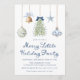 Elegant Blue Ornaments Merry Little Holiday Party Invitation