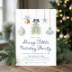 Invite friends and family to celebrate the season with this charming “Merry Little Holiday Party” invitation featuring beautifully painted watercolor Christmas ornaments in soft blue, green, and gold tones. The design showcases a festive watercolor Christmas tree topped with a navy bow, accompanied by matching ornaments including a golden bell, a star, and two coordinating baubles for an elegant, cohesive look. “Merry Little Holiday Party” is displayed in a graceful handwritten navy script, with customizable space below for your party details. Perfect for holiday gatherings, Christmas parties, or cozy seasonal get-togethers, this classic watercolor invite adds a warm and timeless touch to your celebration.