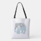 The product design features a blue silhouetted profile of an elephant decorated with paisley pattern.