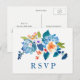 Elegant Blue Peach Floral Wedding RSVP Invitation Postcard