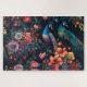 Elegant Blue Peacock in Colourful Flower Garden Jigsaw Puzzle