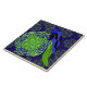 Elegant Blue Peacock with Green Mandala Ceramic Tile