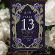 Capture timeless elegance with this Art Nouveau-inspired Table Number! Featuring blue peonies, leaves against an indigo background, this design sets the tone for a sophisticated celebration. Perfect for weddings, galas, and milestone events! Please note that the gold on this product is NOT real foil; it is printed flat. ATTENTION: Items are printed exactly as they appear on your screen when you add them to the cart, so personalise and add each table number you need to your cart individually.