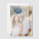 This is a minimalist style image featuring an elegant blue peony at the top, set against a soft grey background. The invitation for Isabella & Patrick's wedding on Saturday, June 6, 2025, at Seaside Palms Resort in Naples, Florida, is written in a sophisticated serif font. The overall mood is serene and romantic, with cool tones that evoke a sense of calm and beauty. Perfect for couples looking to create a refined and timeless wedding announcement.