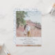 Elegant and romantic wedding save the date photo card with decorative light blue back of card and overlay.