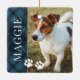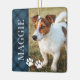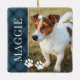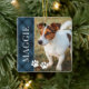 Elegant Blue Plaid Pet Name and Photo Ceramic Ornament
