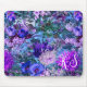 Elegant blue purples floral pattern monogram mouse pad