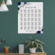 Bask in the rustic beauty of this magnificent 30-table wedding seating chart that exudes elegance and charm. A breathtaking hand-painted watercolor design, featuring a delightful palette of dusty blue, navy, and indigo coloured roses, complemented by gorgeous eucalyptus leaves, foliage, and garden greenery, is sure to captivate your guests. The script calligraphy title elegantly invites guests to "please find your table", while leaving ample space below for the names of the couple and the wedding date, adding a personalised touch to your special day. With seating assignments for 300 guests, with 10 seats per table, this seating chart is both practical and visually stunning, making it easy for your guests to locate their designated tables. Enhance the rustic charm of your wedding reception with this exquisite seating chart that is the epitome of natural beauty and timeless elegance.