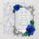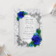 Pretty blue roses and silver leaf pattern frame. Make sure you set the tone for your elegant upcoming bridal shower by sending these enchanting bridal shower invitations. This beautiful shower invitation card is all ready to be personalised. Personalise the card by changing the text in the fields provided front and back. You can change font style, size, and colour, as well as paper type and style.