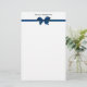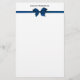 Elegant Blue Satin Bow on White Stationery