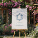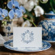 An elegant wedding RSVP card featuring a delicate blue floral crest with a customisable monogram at the top. Designed with timeless typography and a refined botanical wreath, this classic response card allows guests to confirm attendance, meal selections, and number attending. Perfect for romantic, traditional, garden, or European-inspired weddings. Personalise the initials, reply date, and wording to suit your celebration.
