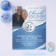 The layout provides space for a featured photo, church name, event title, leadership names, date and time, scripture, and church details. Its clean, structured design ensures all information is presented clearly while maintaining a dignified and uplifting aesthetic suitable for both traditional and contemporary congregations.