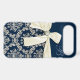 Elegant Blue Silver Damask Diamond Bow Monogrammed Case-Mate Samsung Galaxy Case
