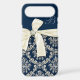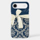 Elegant dark royal blue and silver damask pattern featuring an ivory cream silk bow and a shining diamond. Personalise it with your monogram or add your name using the orange "customise it button". Stylish, feminine, girly! The perfect gift for any chic woman! Some elements by Shery K Designs @ Mygrafico. Please note that this case is photo printed. There is no actual diamond, satin bow or glitter. It won't shine or sparkle.