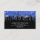 Elegant Blue Silver Glitter Drips Black Modern Business Card