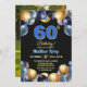 An elegant modern design featuring blue 60 number with gold edges and balloons with silver, blue and gold glitter and a special photo of the birthday person on the back of the invitation. Customize the details for a unique and chic Birthday Celebration.