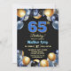 Elegant Blue Silver Gold 65th Birthday Party Invitation