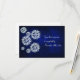 This is a stylish, rich looking wedding RSVP card with beautiful silver white snowflakes falling against a dramatic royal blue gradient background. The back of the response card is white for your respondent to easily mark. All the text is customisable. This card matches the "Elegant Blue Snowflake Winter Wedding Invitations" in our store.