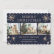 Elegant blue photo collage holiday card featuring snowflakes and stars. Easily personalise this cute holiday card with your photos and text.