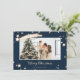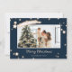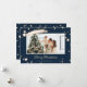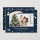 Personalized blue photo Christmas cards featuring hand-lettered script and stars on a plain blue background. Easily personalize these blue starry photo Christmas cards with your favorite image, a family name and text.