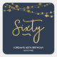 This elegant 60th Birthday Party square sticker feature strings of lights and the word "Sixty" in faux gold against a dark blue background. Check out other matching items here https://www.zazzle.com/collections/strings_of_lights_faux_gold_celebration_collection-119311942951401241?rf=238364477188679314