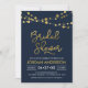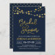Elegant Blue Bridal Shower invitation featuring strings of lights and the word "Bridal Shower" in faux gold foil against a dark blue background. Card includes a matching pattern back side. Check out other matching items here https://www.zazzle.com/collections/strings_of_lights_faux_gold_celebration_collection-119311942951401241?rf=238364477188679314
