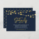 This elegant Blue Strings of Lights Wedding Details card features strings of lights and the word "Details" in faux gold foil against a dark blue background. Card has a polka dot pattern back side. Check out other matching items here https://www.zazzle.com/collections/strings_of_lights_faux_gold_celebration_collection-119311942951401241?rf=238364477188679314
