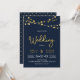 Elegant Dark Blue Wedding invitation featuring strings of lights and the word "Wedding" in faux gold foil against a dark blue background. Invitation has a polka dot pattern back side. Check out matching items like stickers and stamps here https://www.zazzle.com/collections/strings_of_lights_faux_gold_celebration_collection-119311942951401241?rf=238364477188679314