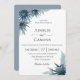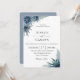 Watercolor blue thistle flowers and leaves, botanical wedding invitation. Customise text, font style, colour and size. Backing colour shown in dusty blue can be edited as well.