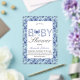 This elegant baby shower invitation features a classic Toile de Jouy design in soft blue tones, paired with a delicate bow for a timeless and sophisticated look. The Chinoiserie floral pattern adds a touch of refinement, perfect for celebrating the arrival of a baby boy. Ideal for vintage-themed or stylish boho baby showers, this acrylic invitation is customisable to match your event details.