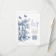 Elegant Blue Toile De Jouy QR Code Wedding Rsvp. A blue toile de jouy floral design is to the left on the front and smaller on the back.