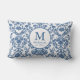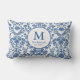 Add timeless charm to your home décor with this elegant lumbar pillow featuring a lovely floral blue toile pattern. Perfect for sofas, beds, or accent chairs, this design is both stylish and personal. Customise it with your monogram, family name, and "established" date to create a meaningful keepsake or a thoughtful gift for housewarmings, weddings, or anniversaries.
