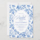 Elegant Blue Toile Rose Floral Bridal Shower Invit Invitation