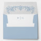 Classy victorian theme wedding invitation envelope, featuring delicate dusty blue watercolor floral design and an elegant monogram.