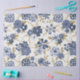 Shades of blue flowers with green-gold vines repeat floral pattern from Allison Steffen for Studio Posies.