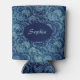 Elegant Blue Vintage Damask Pattern Can Cooler