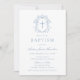 Elegant Blue Vintage Floral Cross Baptism Invitation
