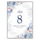 Elegant Blue Watercolor Floral Wedding Table Number