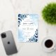 The Elegant Blue Watercolor Flower Wedding Invitation is a beautiful and sophisticated invitation that is perfect for a wedding ceremony. The invitation features a stunning watercolor design in shades of blue, which gives it a timeless and elegant look. The flowers are delicately painted and add a touch of natural beauty to the invitation. The text is written in a stylish font and can be customised to include the names of the bride and groom, the date and time of the ceremony, and any other important details. The invitation is printed on high-quality paper, which ensures that it will look perfect on your special day. This invitation is a wonderful choice for any couple who is looking for a classic and elegant wedding invitation.