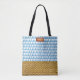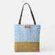 Elegant Blue Watercolor Geometric Rattan Look Tote Bag