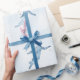 Give your holiday gifts an elegant and artistic touch with this blue watercolor wrapping paper featuring a unique pattern of abstract floating human silhouettes. The delicate figures appear weightless, painted in soft blue tones with a watercolor effect that brings a serene, dreamy feel to the design.