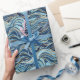 Elegant Blue Wave Pattern with Gold Accents Wrapping Paper