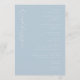 This wedding program features a minimalist and elegant design with a soft pastel blue background, creating a serene and calming atmosphere. The layout is centred and vertically aligned, emphasizing clarity and simplicity, while the typography combines cursive and sans-serif fonts to add sophistication and readability. Perfect for couples seeking a contemporary and formal look, this template allows customisation of names, dates, and locations, making it ideal for personalising your special day. The absence of additional motifs keeps the focus on the text, ensuring a clean and modern aesthetic that conveys tranquillity and celebration.