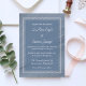 A timeless and elegant wedding invitation featuring a rich dusty blue background, delicate dotted frame border, and graceful script typography. This design is perfect for formal, traditional, church, or evening weddings. The classic layout gives a luxury printed stationery feel while remaining soft and romantic.