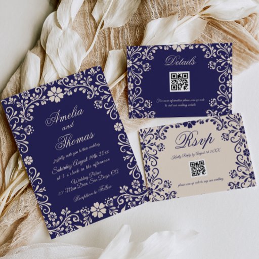 Elegant Blue Wedding Qr code Details Enclosure Card