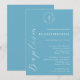 This minimalist baptism invitation exudes elegance and simplicity, perfect for a sacred celebration. The blue and white design features the word Baptism in graceful script calligraphy, adding a touch of sophistication. At the centre, a delicate white cross is framed by a white wreath of foliage, symbolising peace and faith. The understated design, paired with subtle accents, highlights the importance of this special day, making it an ideal choice for inviting loved ones to witness and celebrate a beautiful milestone in your child's spiritual journey.