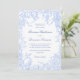 Celebrate your special day with this elegant blue and white botanical wedding invitation, featuring delicate hand-drawn florals and graceful birds inspired by timeless vintage toile patterns. The refined design blends romantic garden elegance with classic sophistication, making it perfect for formal weddings, garden ceremonies, and luxury celebrations.