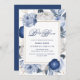 Modern baby in bloom feature with blue, white and gold flower background frame designed with calligraphy "baby in bloom" baby shower invitation. Click the personalise button to customise this design with your details. To change the colours and fonts choose edit this design further to open up additional options for customisation.